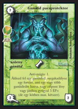 Ganüid paraprotektor (6): Sosem rajongtam ezért a ganüid legényekért, ennek az egyik oka, hogy elég gyengécskék. S ezen nem sokat fog segíteni az évente előbukkanó, egy-két közepes lap sem. Paraprotektorral meg tudjuk védeni a lényeinket, de milyen áron... Egy másik lényt kell feláldozni. Rendben, hogy ez jó esetben egy ifjonc lesz, de akkor sem érzem az "egy lap árán megvédek egy másikat" típusú hozzáállást.