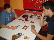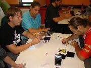 Simon Dániel és Farkas István játszottak egymással. A 2. körben István gyors támadást indított egy Ka-Boommal, de a következő körben majdnem elfelejtette fenntartani, már nyúlt a lapért, hogy felhúzza, amikor Dani sportszerűen figyelmeztette. Ka-Boom ezután torzszülötteket falva egyre hízott, míg végül megnyerte Istvánnak a meccset. A harmadik, döntő játszmában Dani gyorsan támadni kezdett egy Ichinedarral és egy Tűzszarvval. István megpróbált kettőt sebezni a Tűzszarvon egy Morgan kisujjával. Ez persze egy fatális hiba volt, hiszen a sebző források Tűzszarvat nemhogy nem sebzik, de tovább erősítik. Dani két kör múlva ennek köszönhetően meg is nyerte a meccset.
